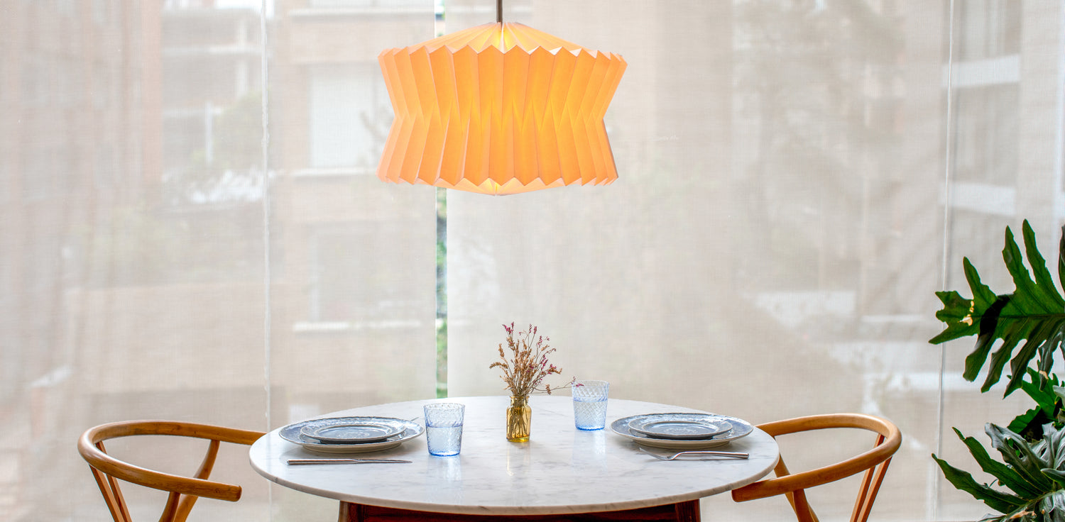 Lámparas colgantes marca Plié fabricadas en papel 100% natural. Hecho a mano...