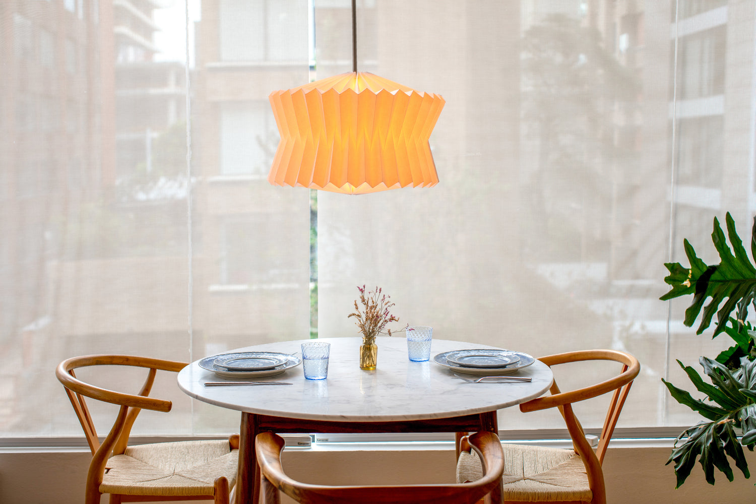 Lámparas colgantes marca Plié fabricadas en papel 100% natural. Hecho a mano...